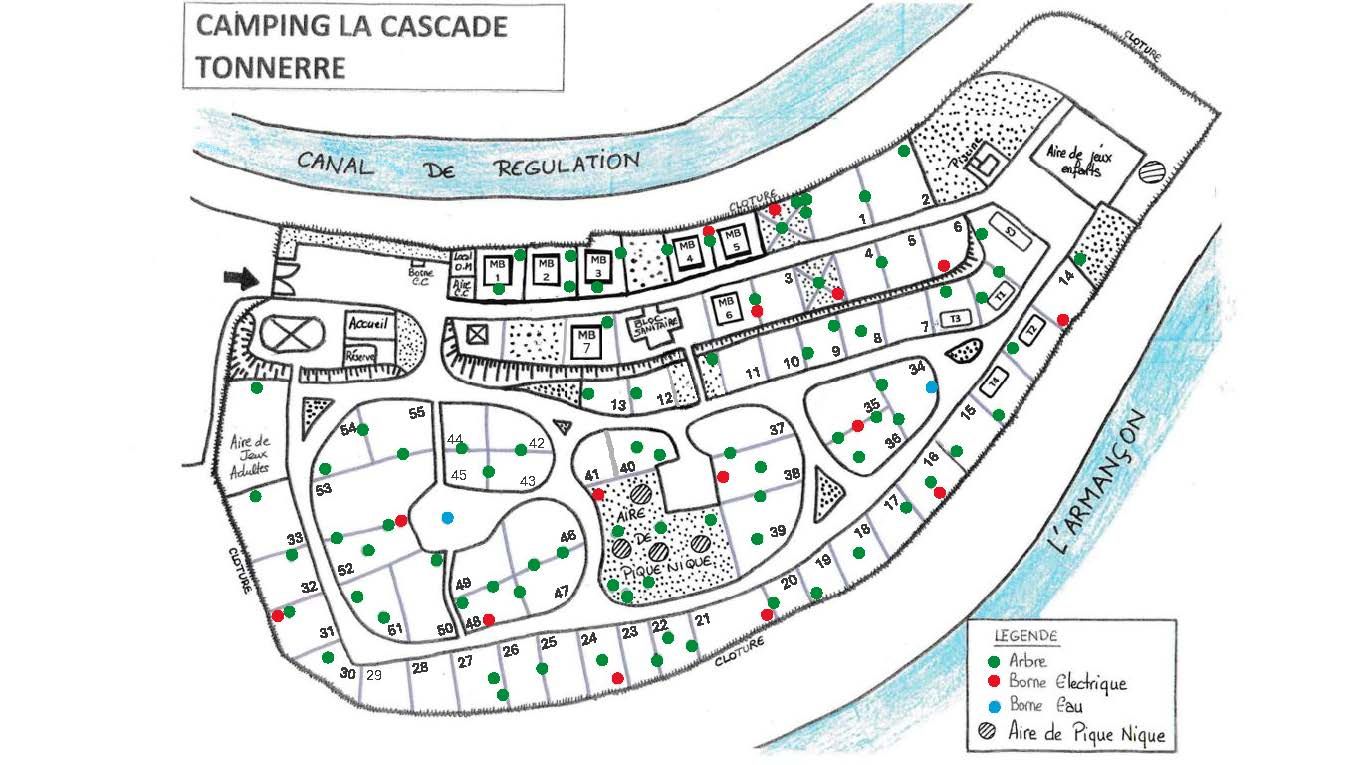 In the north of Burgundy and in the heart of the Yonne, in the town of the Chevalier d'Eon, whether you're driving, taking the train, walking or cycling, a lover of art or history, a sportsman or a contemplative, the Cascade campsite awaits you.